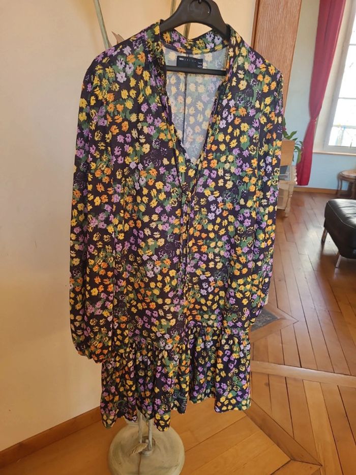 ⬇️mes autres annonces pour femme en taille 46 👉 #cg89femme46 😁 réductions activées des 2 articles ! une robe fleuri sur fond noir, avec des manches longues, un jolie col mao et un cordon a nouer sur un col "V". Elle est légèrement elasthane et n'a pas besoin de repassage. Elle mesure 63 cm aux aisselles, 45 cm aux épaules et 88 cm de longueur. très bon état, marque asos, taille 46 #robe #robefleuri #manchelongue #robehiver #robeautomne #taille46 #asos