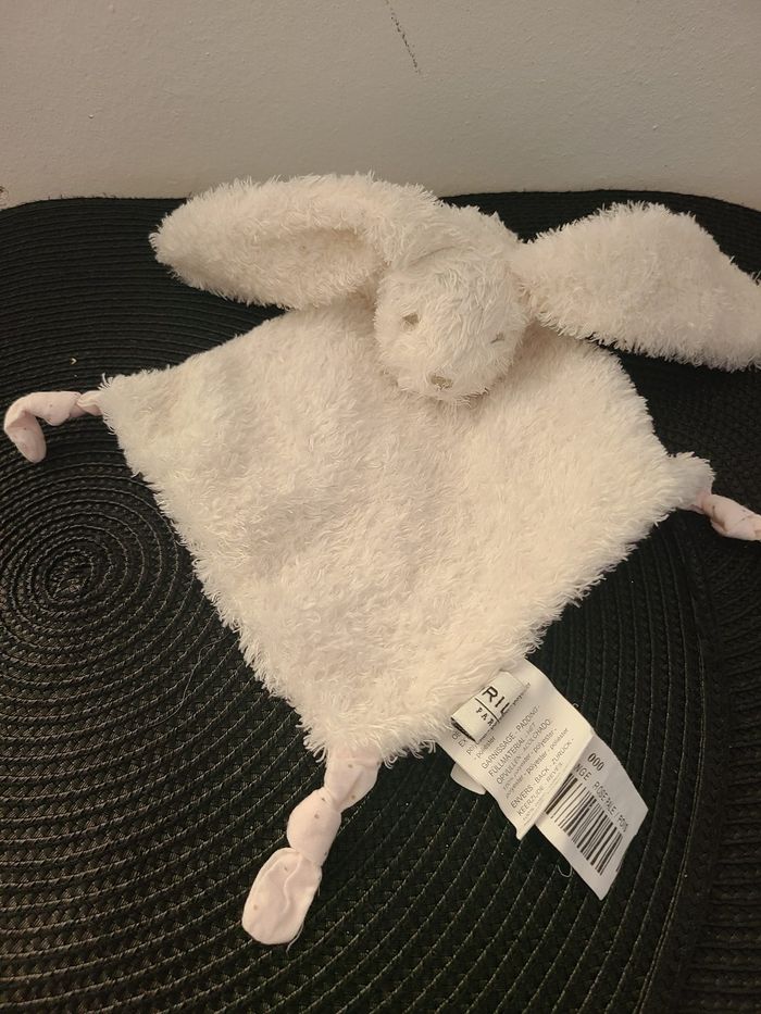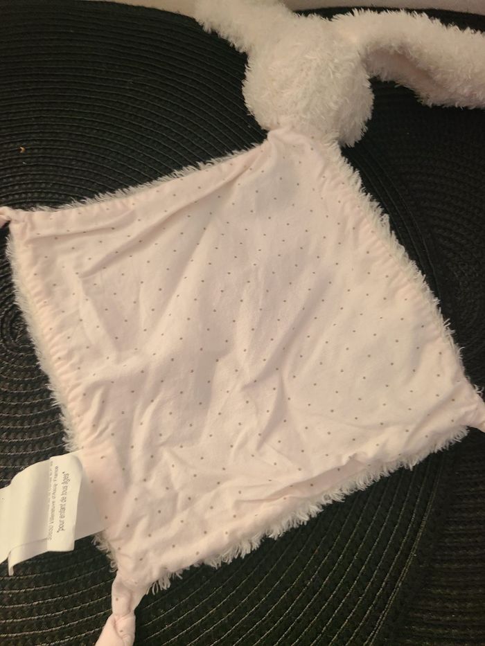 Doudou plat lapin CYRILLUS blanc losange 25 cm 3 - photo numéro 1