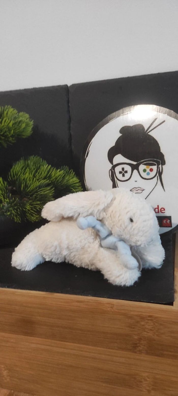 peluche mon tout petit doudou et compagnie lapin blanc bleu dc1238 bonbon Noeud - photo numéro 1