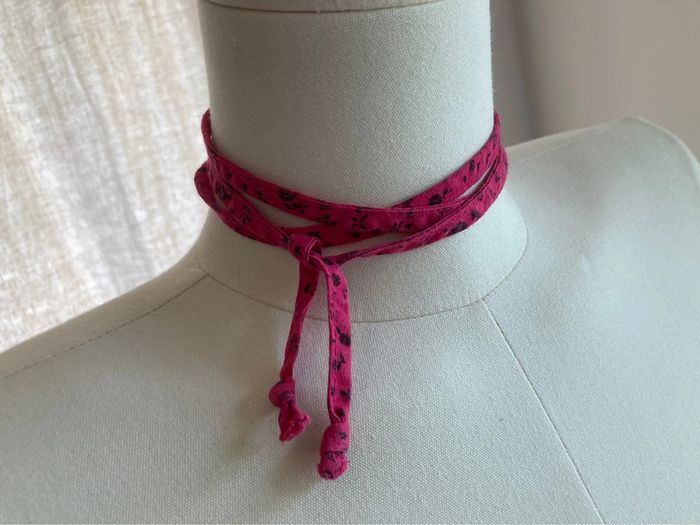 Ceinture cordon en tissus rose fleur noire 115x 0.8 - photo numéro 4