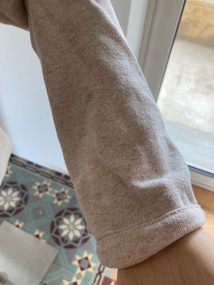 #mmmg_taille36 #mmmg_taille38 Molleton beige légèrement pailleté Coupe féminine Saison été