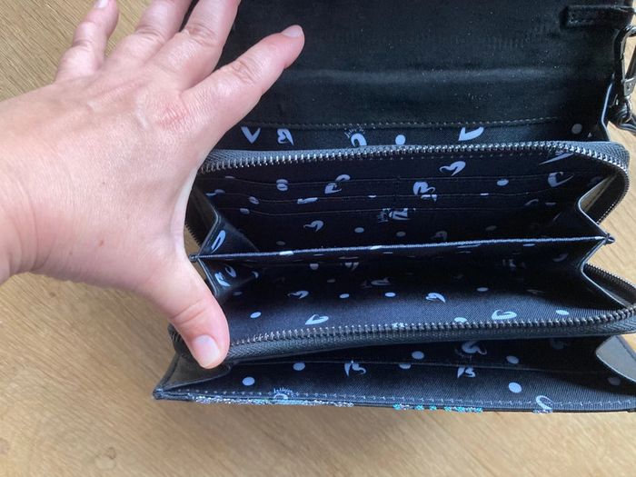 #mmmg_accessoires Pochette multi poche organisateur avec bandoulière amovible. Bi matière nubuck daim noir et taffetas dans les tons bleu argent et noir Jamais portée