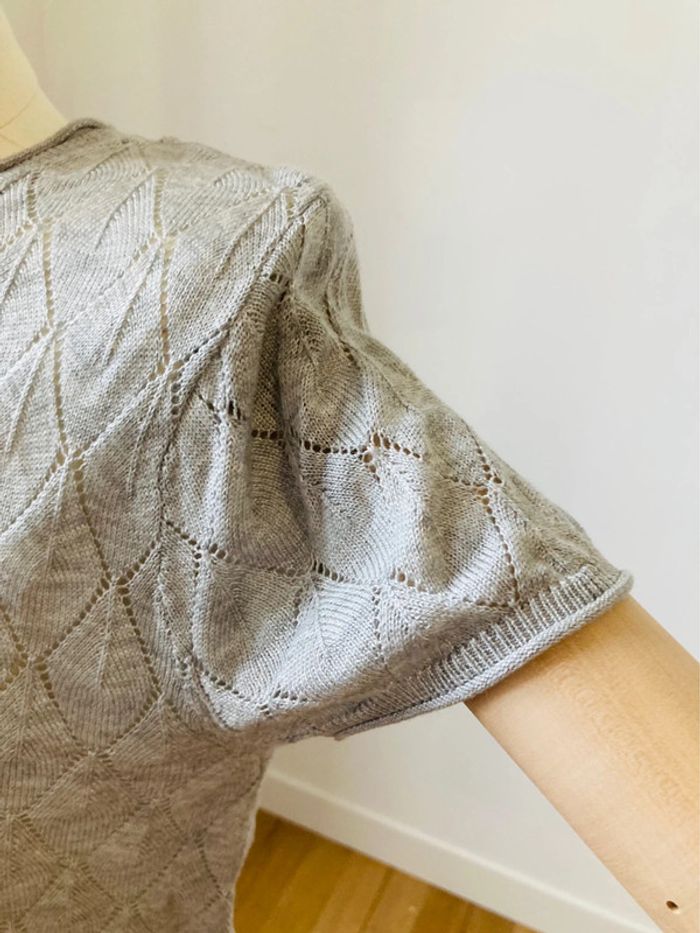 Teeshirt en maille crochet ajouré gris perle - photo numéro 2