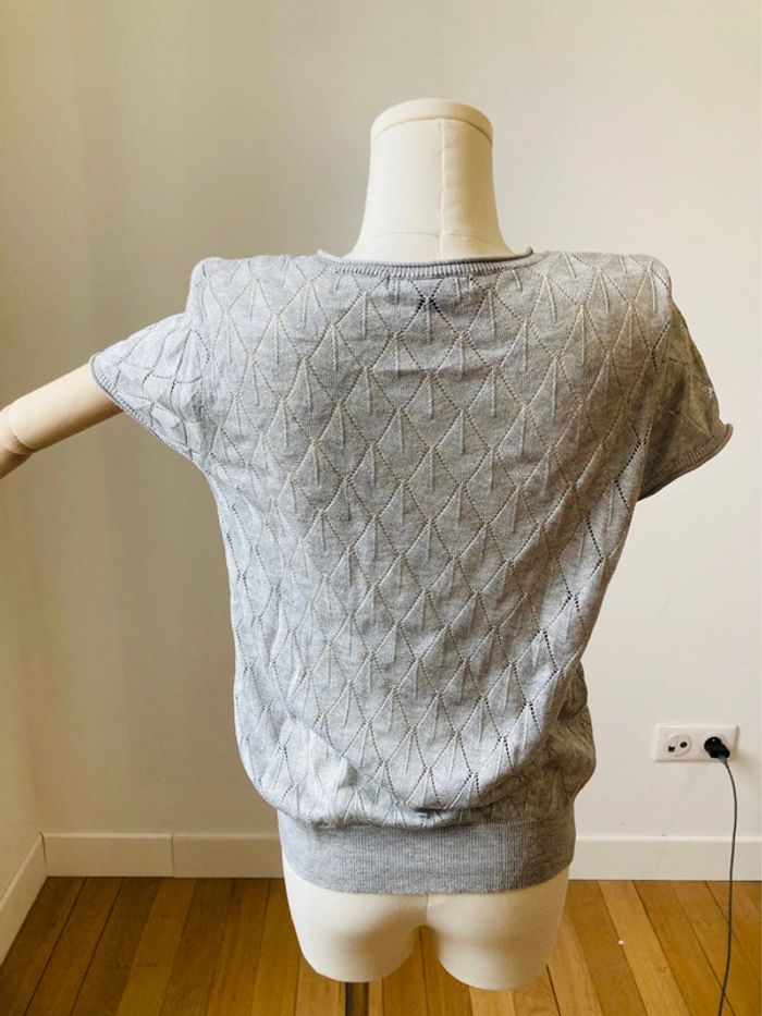 Teeshirt en maille crochet ajouré gris perle - photo numéro 3