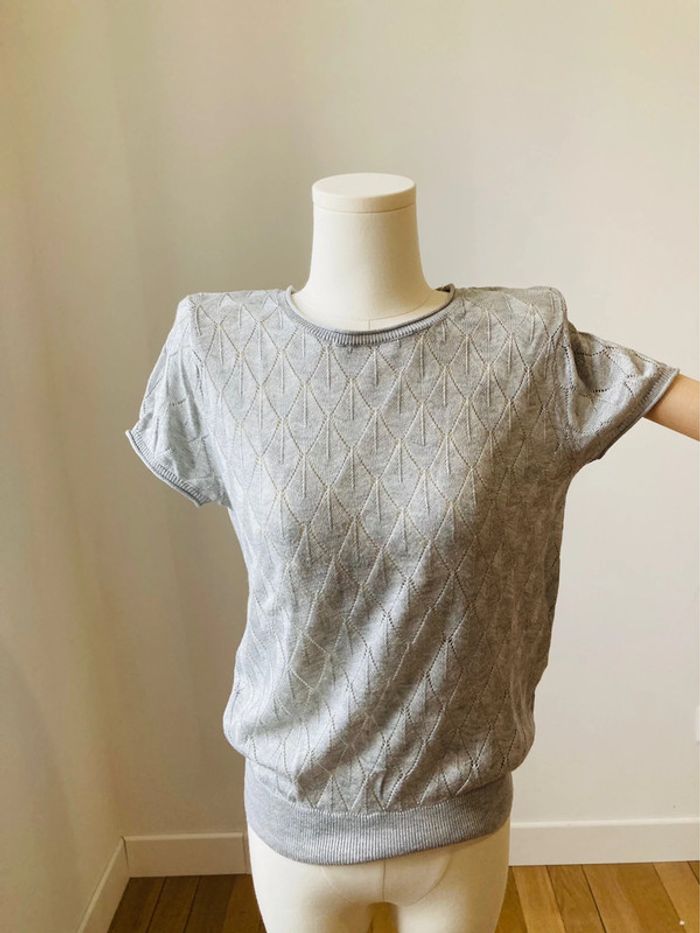 Teeshirt en maille crochet ajouré gris perle - photo numéro 1