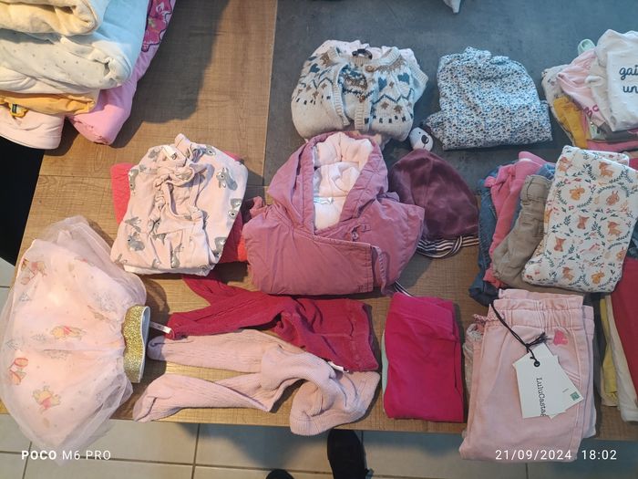 Lot de vêtements bébé en 6 mois toutes marques avec pour certains articles les étiquettes, pas de tâche, ni trous, toutes les pressions et fermeture éclair ok.