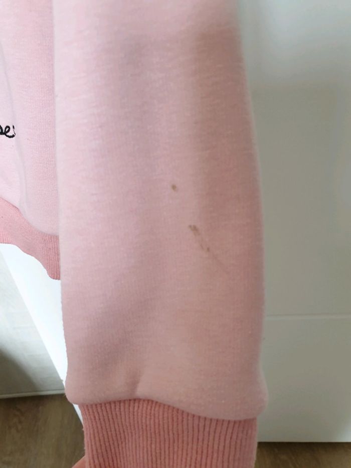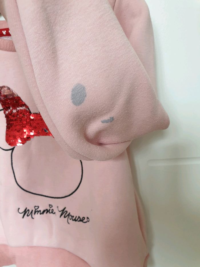 Sweat Minnie en bon état général. Il y a des tâches sur les manches ( cf photo 2 et 3 )