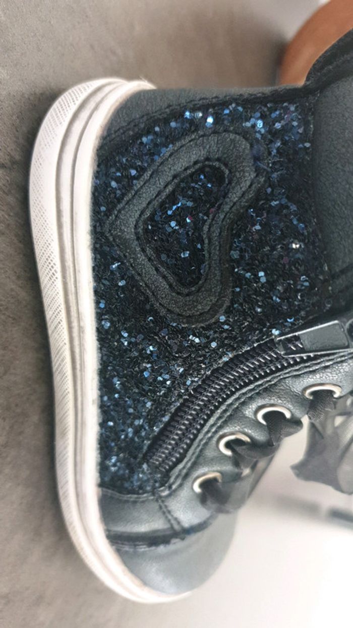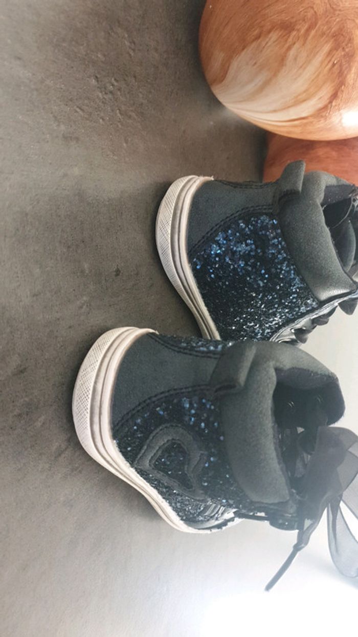 Basket avec détail pailleté, en bon état. Effet vieilli sur la semelle et lacets en tulle.