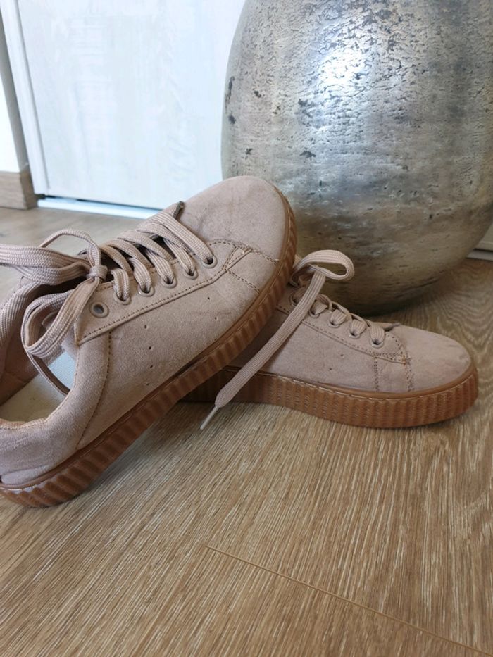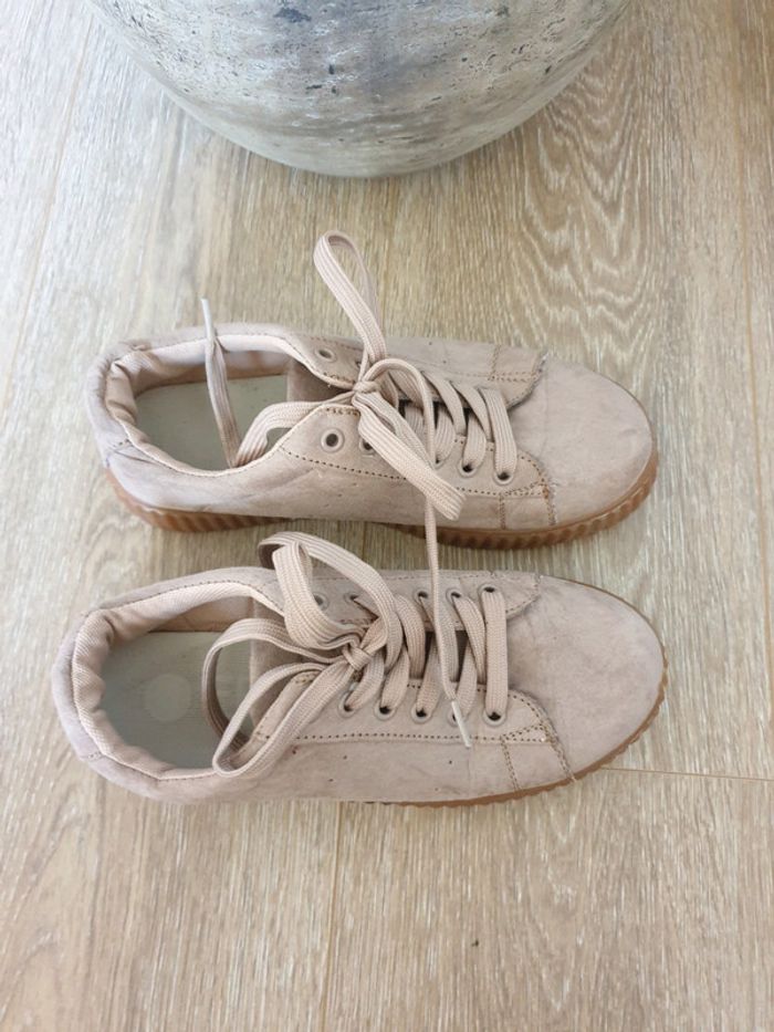 Basket à plateforme en bon état. ( petite trace noir sur le côté ) Taille 37