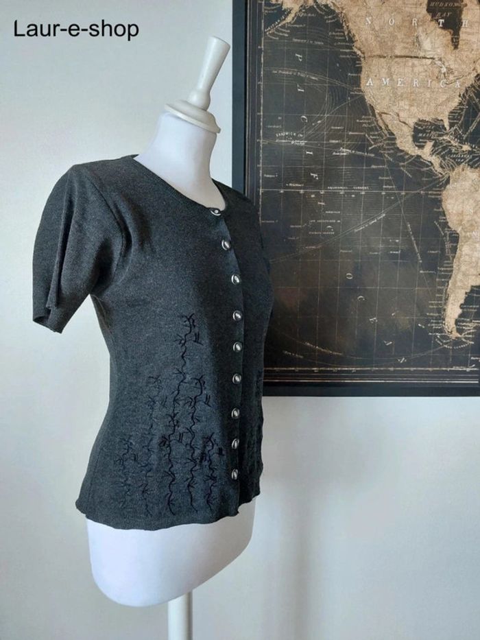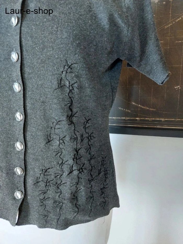Cardigan gris manches courtes et broderies S 36 - photo numéro 4