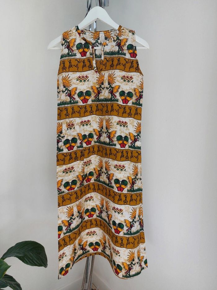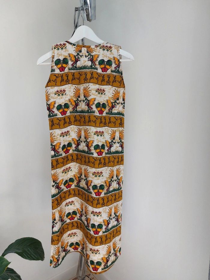 💛 Robe longue sans manche en coton imprimé thème Afrique, en excellent état, matière fluide et légère, idéal pour la saison ✨️