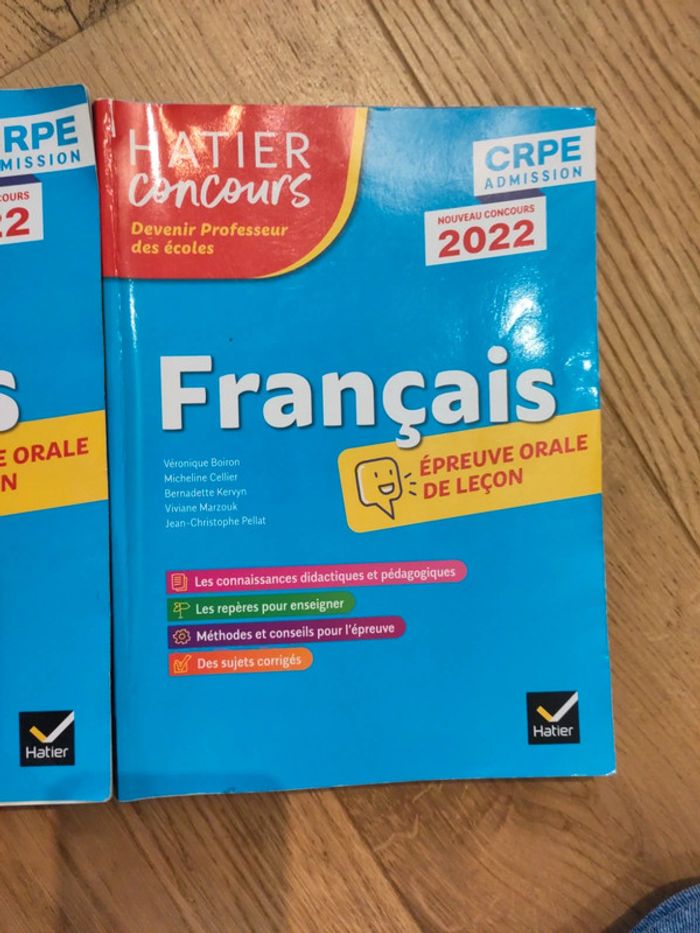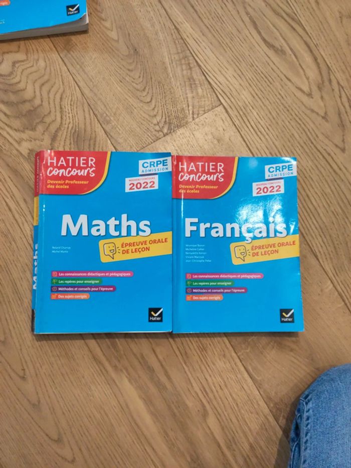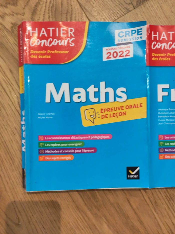 2 livres CRPE 2022, épreuves orales d'admission de mathématiques et français. Édition Hatier concours Bon état, non annotés, du scotch sur la couverture du livre de maths.