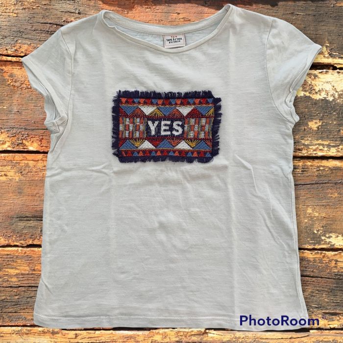 Tee-shirt à manches courtes de couleur blanc, broderie sur le devant. En excellent état, aucune tâche ni trou. Taille 8 ans, marque Tape à l’œil. Envoi rapide et soigné.