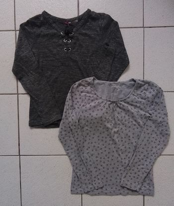 Lot de trois tee-shirts manches longues pour fille de la marque In extenso. Très bon état sauf pour la blanche qui a deux tâches légères au niveau d'un bras (voir les deux dernières photos).