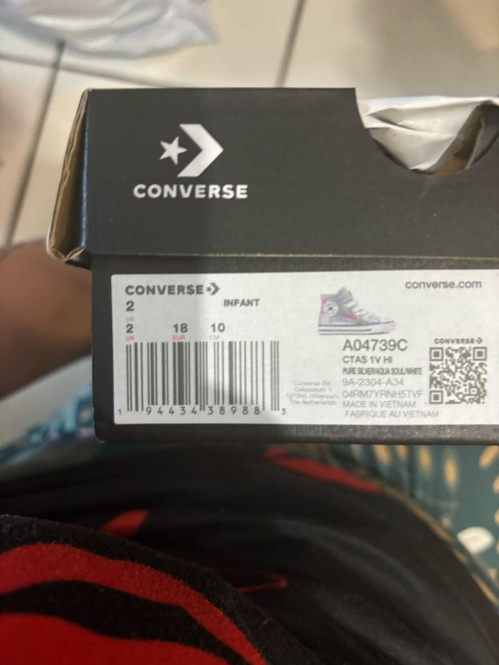 Chaussure converse neuf achetée trop petite pour ma fille. Je les laisses à 30 euros pointure 18