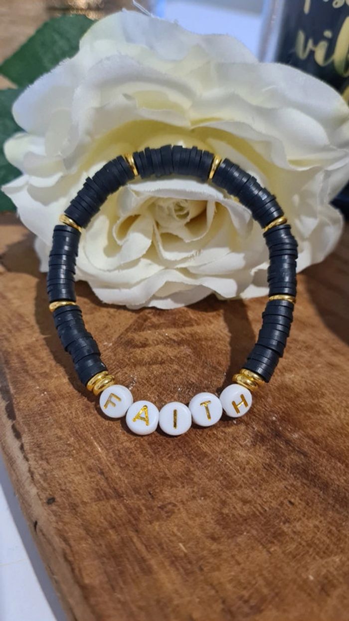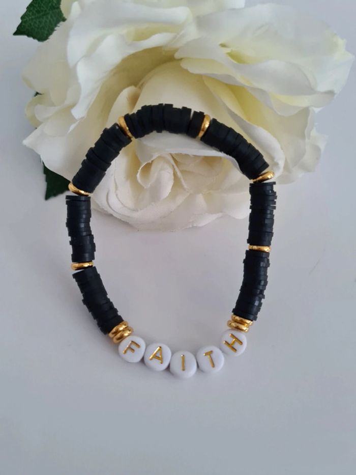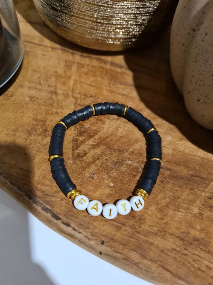 Bracelet élastique en perles heishi noir à message