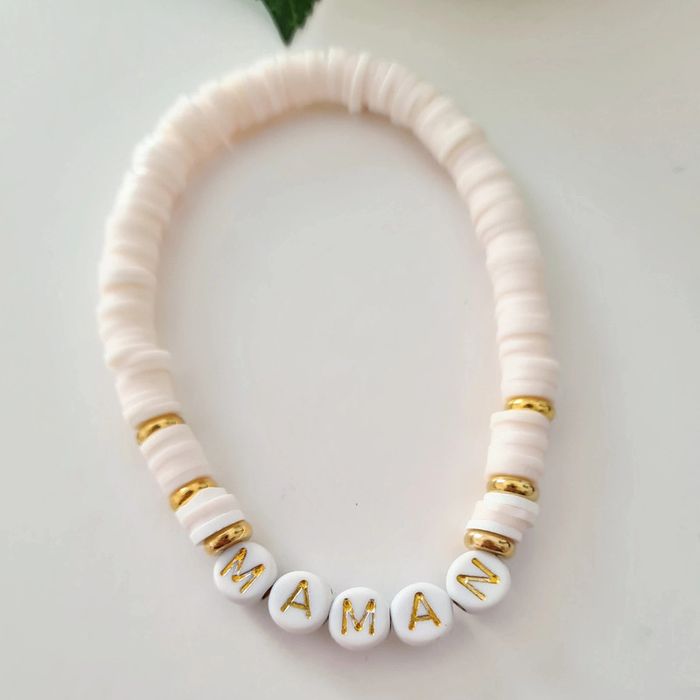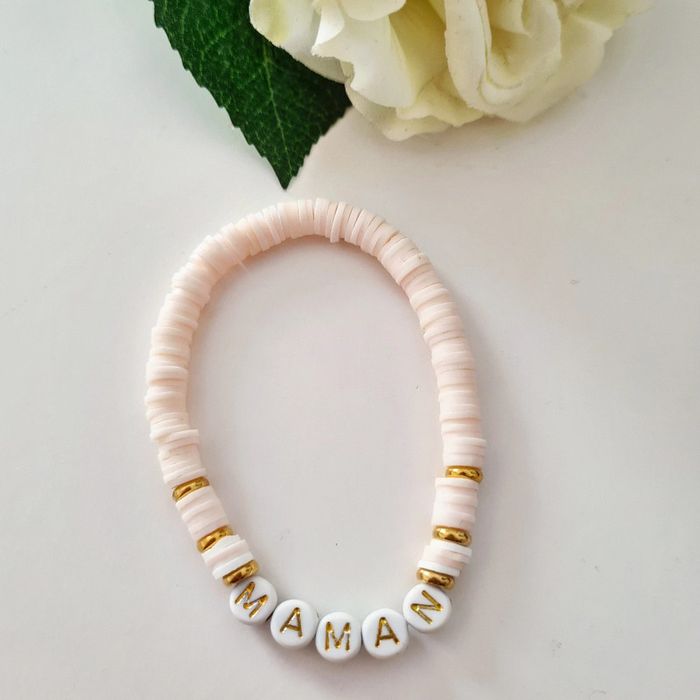 Bracelet en perles heishi avec inscription maman