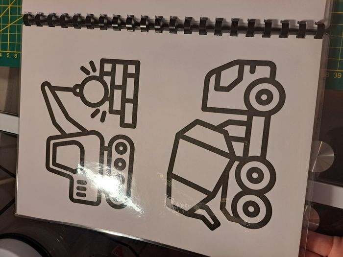 livret de coloriage et d'activités ludique effaçables et réutilisables 8 coloriages sur le thème des engins de chantiers 6 activités à scratch effaçables et réutilisables