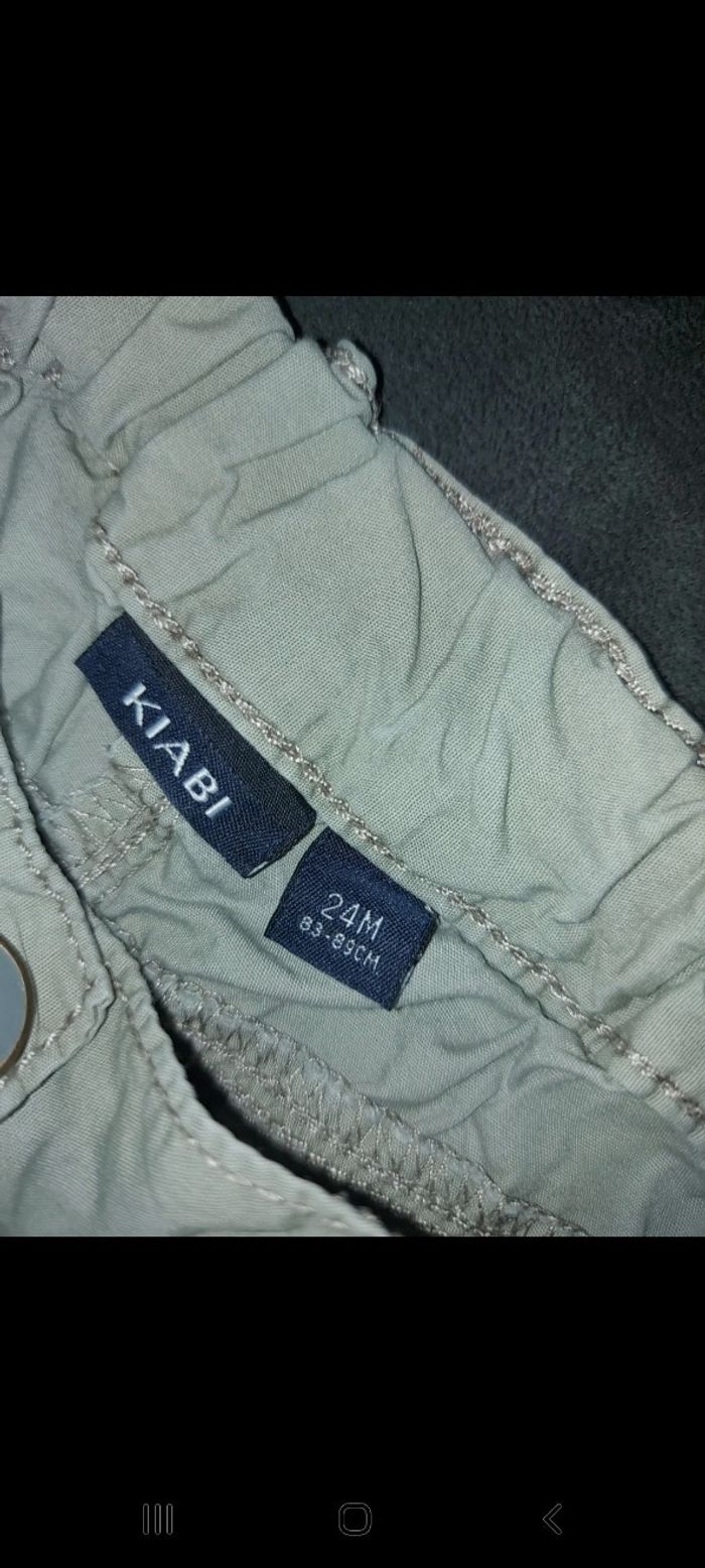 Petit short kaki de chez kiabi en taille 24 mois. Pas de tâche pas d'accros état correct. Idéal pour l'été.