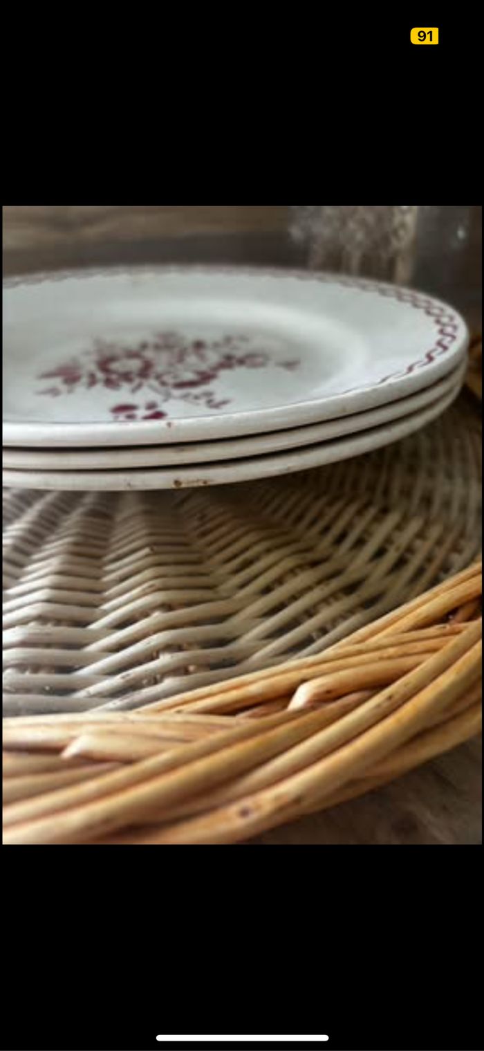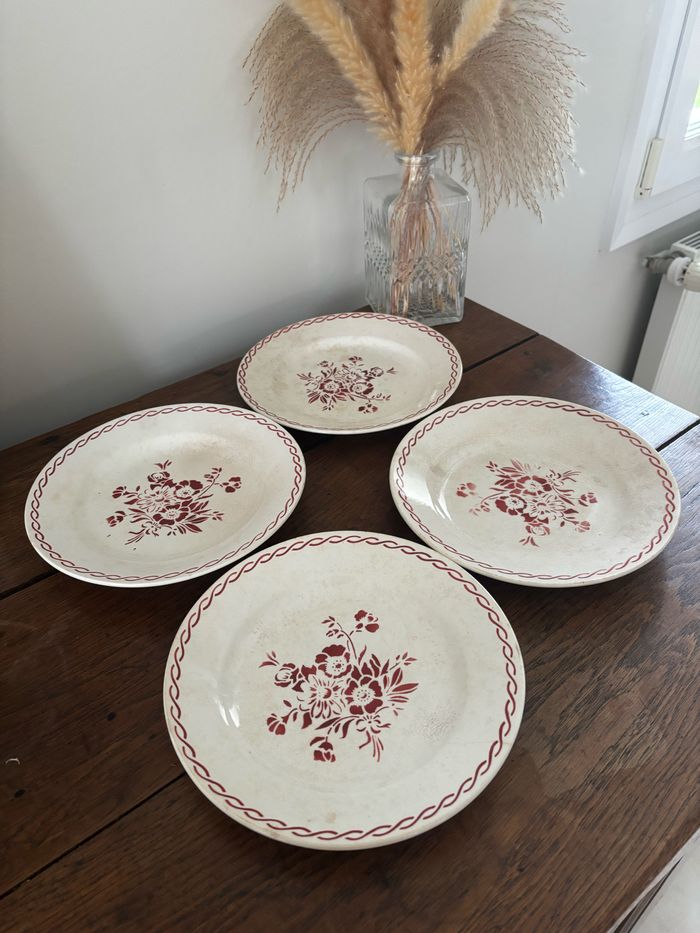 Vintage-Lot de 4 assiettes plates en faïence de Saint Amand
