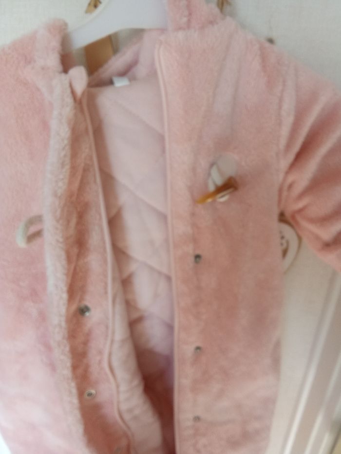 Combinaison hiver pilote polaire, chaude , rose pâle bébé fille marque tex 3,6 mois, hiver, pied, mains - photo numéro 2