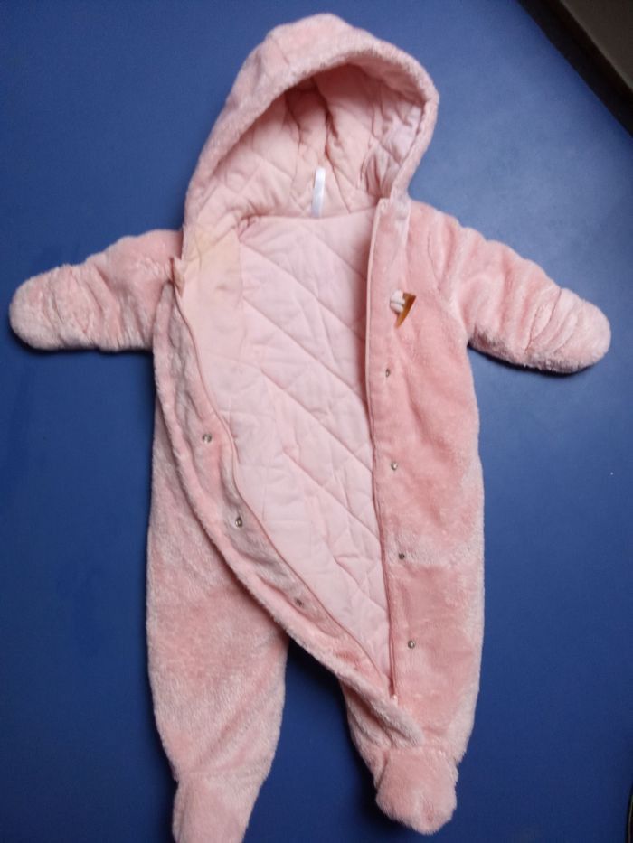 Combinaison hiver pilote polaire, chaude , rose pâle bébé fille marque tex 3,6 mois, hiver, pied, mains - photo numéro 3