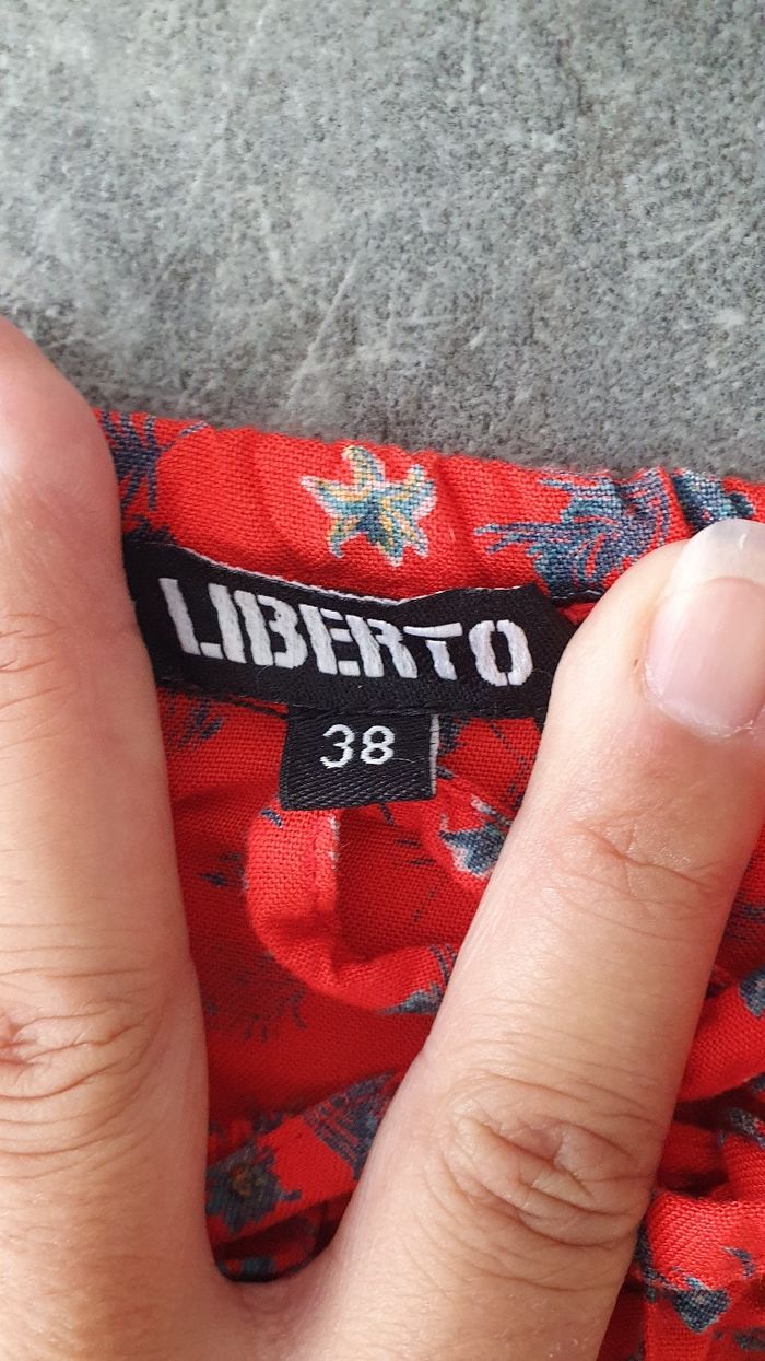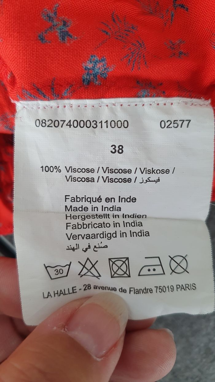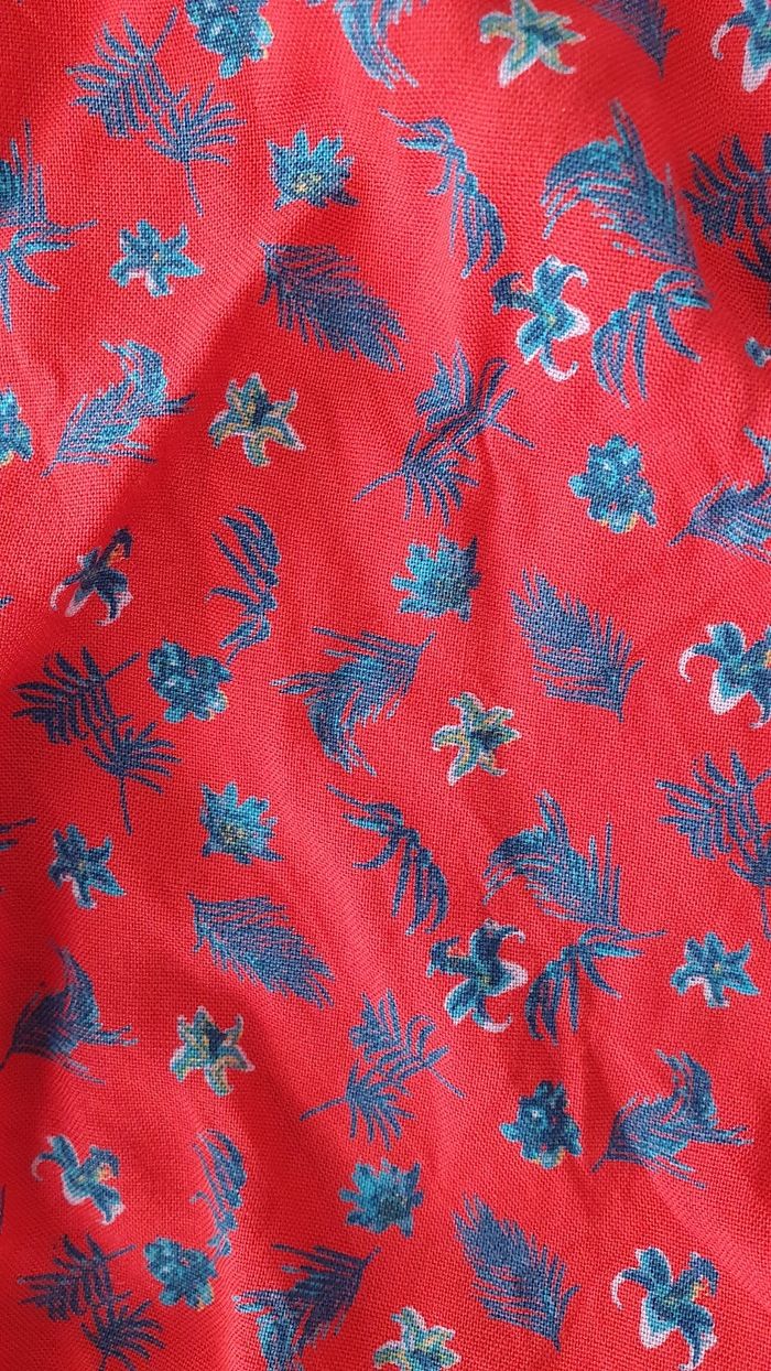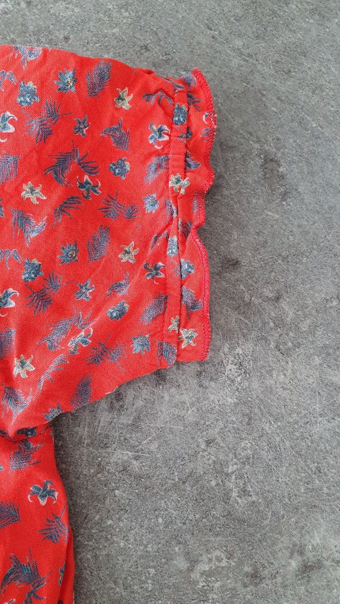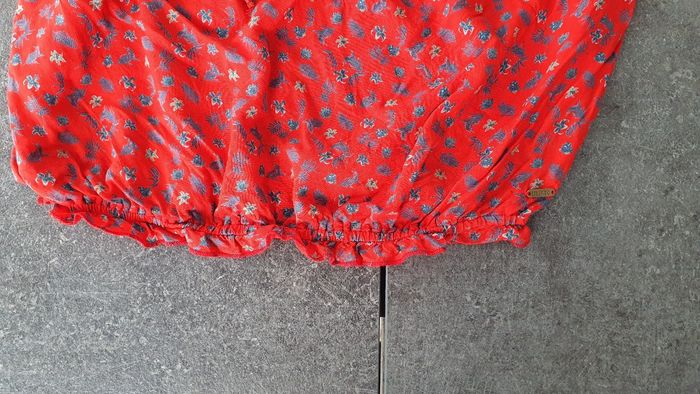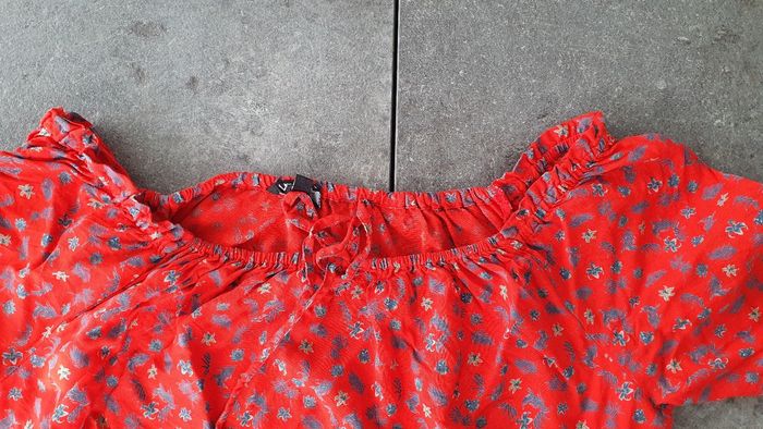 Haut court rouge à fleurs en très bon état Resseré en bas