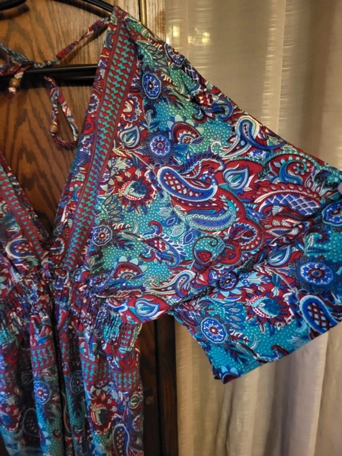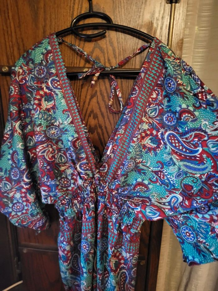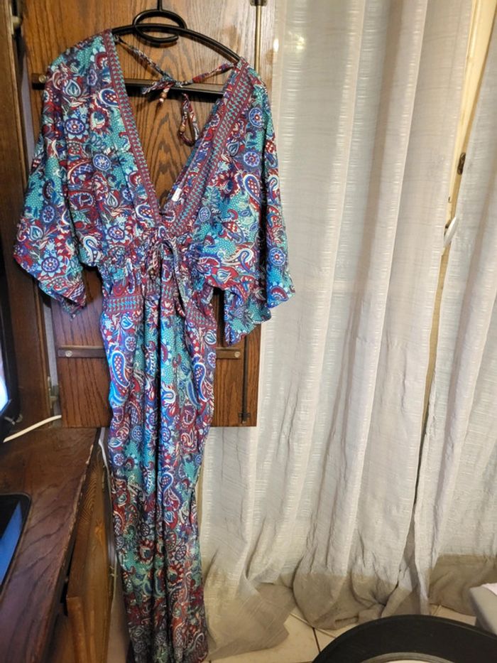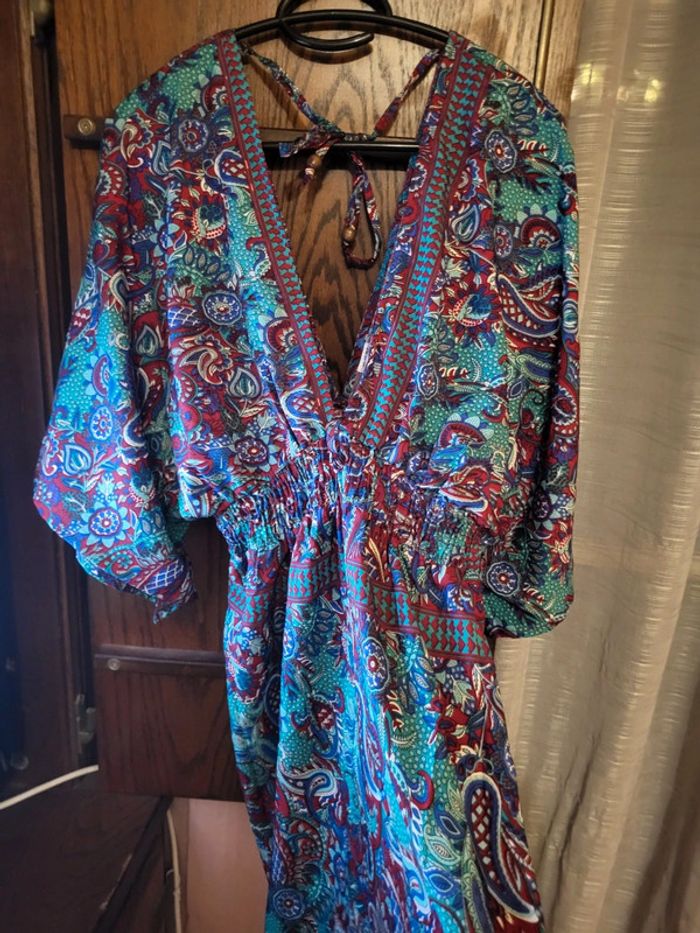 👎🏼👎🏼 PAS DE VINTED GO SVP 👎🏼👎🏼 Robe longue taille unique qui correspond en gros à du L, manches papillon 🦋 et matière satinée, ouverte sur les côtés ❤️ EXCELLENT ÉTAT ❤️