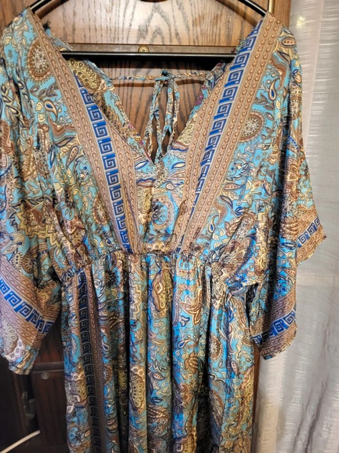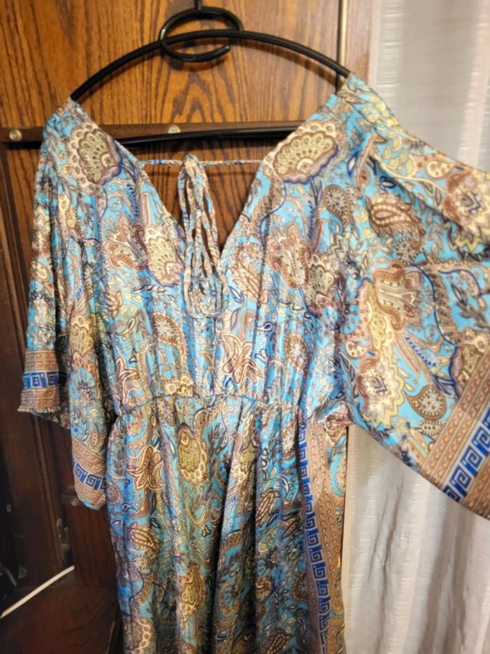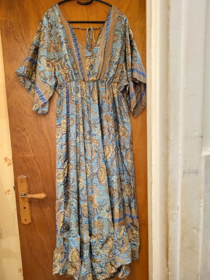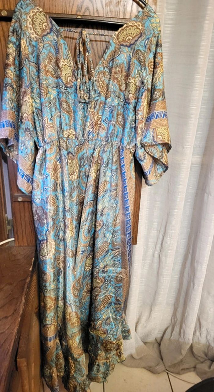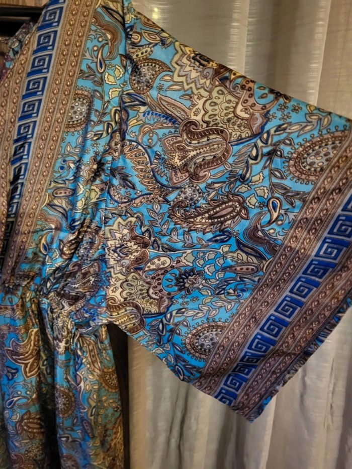 👎🏼👎🏼 PAS DE VINTED GO SVP 👎🏼👎🏼 Robe longue taille unique qui correspond en gros à du L, manches papillon 🦋, matière satinée, imprimé magnifique ❤️ EXCELLENT ÉTAT ❤️