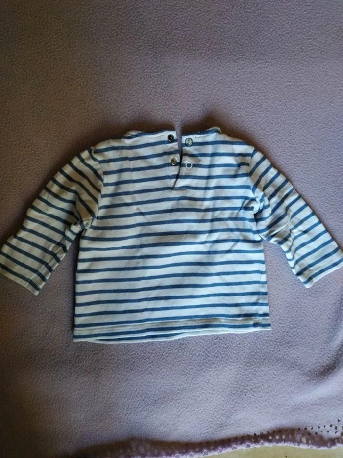 Lot de 2 t-shirt manches longues. Le rayé est de la marque absorba, l'autre est de la marque sergent major. Celui-ci s'ouvre complètement dans le dos pour être enfiler facilement.