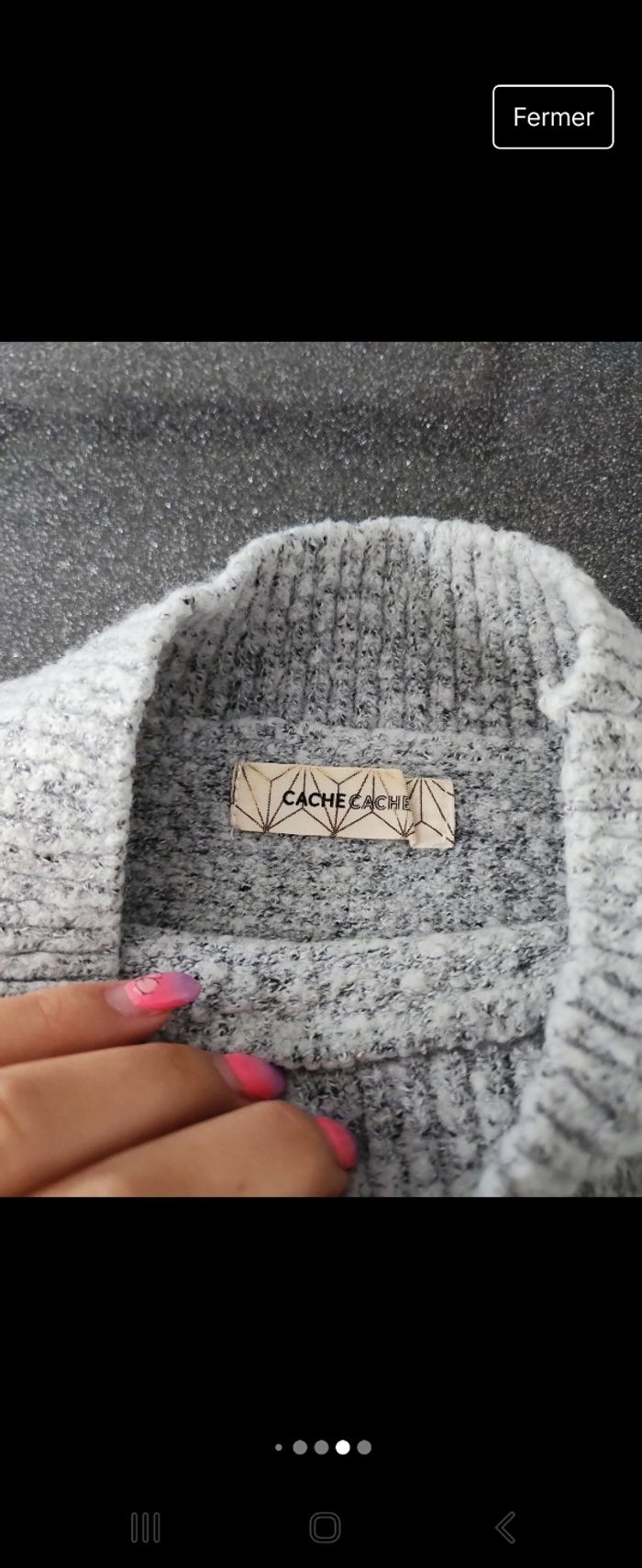 Pull en laine gris et blanc  Cache cache - photo numéro 6