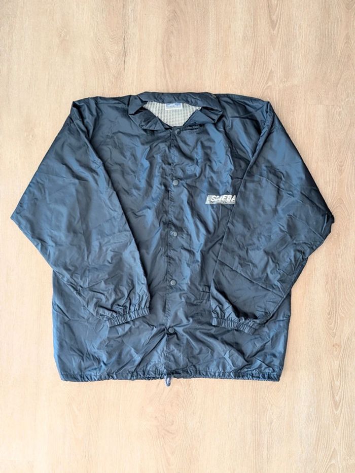 Coupe vent imperméable, veste de pluie Avec capuche intégrée dans le col Fermeture par boutons pression Taille L 100% polyester Sérigraphié SMEBA