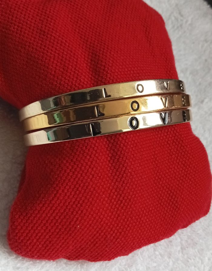 3 Bracelets avec inscription LOVE neuve jamais portée. S'ajuste facilement