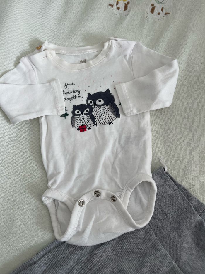 Porté une seule fois taille (1-2) mois mais il peut y aller jusqu'à3 mois (h&m taille grand )