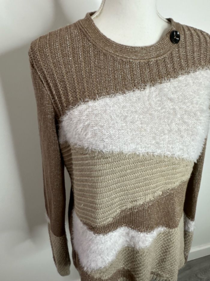 Pull beige crème et blanc angora synthétique Vintage T42 XL - photo numéro 7