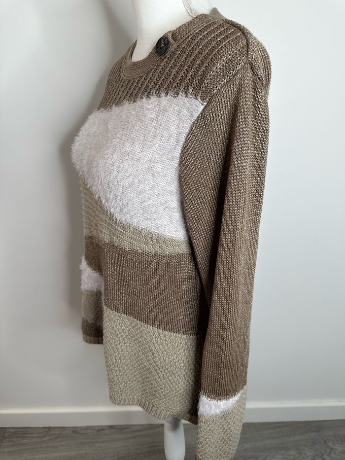 Pull beige crème et blanc angora synthétique Vintage T42 XL - photo numéro 3