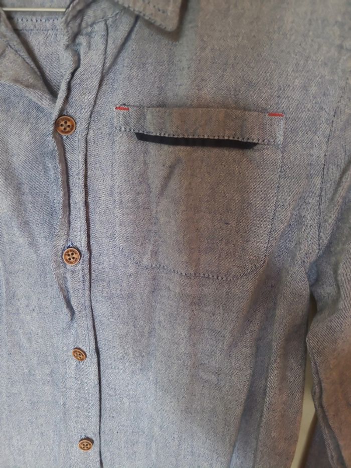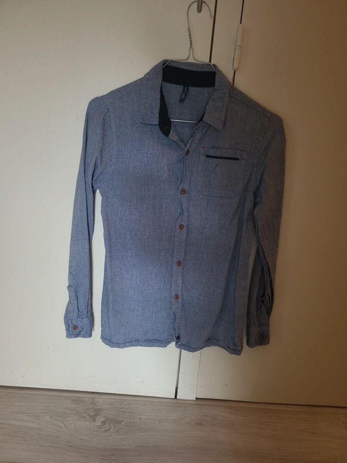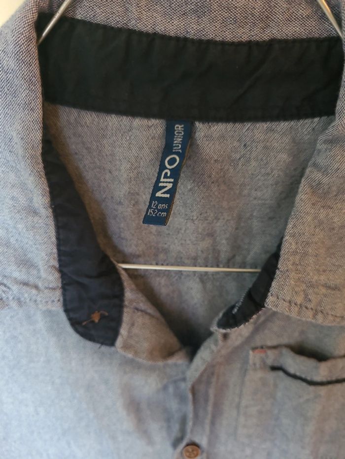 Chemise manches longues NPO Junior, bleu chiné, taille 12 ans. Portée 1 ou 2 fois pour noël et nouvel an... Parfait état, comme neuve.