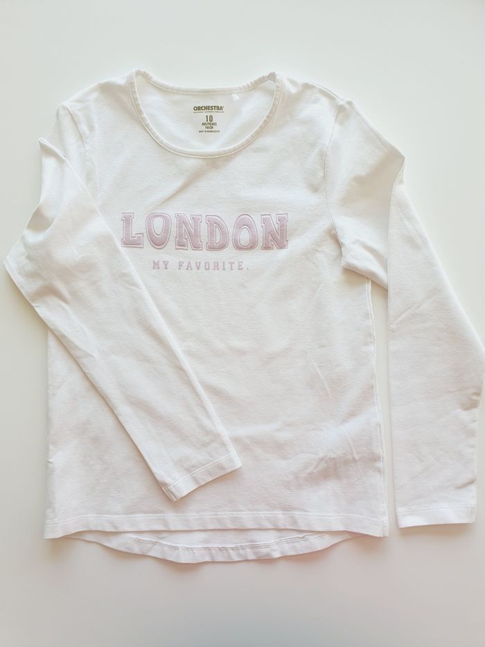 Tee-shirt Orchestra Taille 10 ans Coloris écru avec motif rose pailleté Matière coton/elasthanne Très bon état