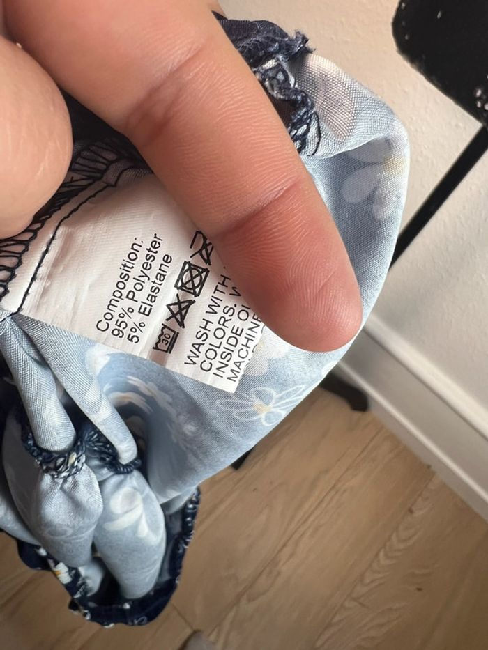 Taille: L État : neuf sans étiquette (jamais porté) Couleur : bleu et fleur blanche et jaune Élastique à la taille, volant Si l'article n'est pas porté, c'est que ce n'est pas à ma taille = pas de photo portée. ❌ Tous mes articles seront nettoyés avant envoie, envoie rapide (J+2 maximum le temps du nettoyage). ✨ Envoie uniquement en Mondial Relay. 📦 Pas d’UPS, ni de RELAIS COLIS ❌ les relais sont trop loin de chez moi. La vente sera annulée. J'accepte la négociation dans la limite du raisonnable. ✅ Avant tout achat, merci de lire mon profil 🦋