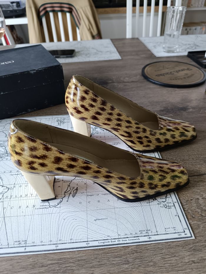 Escarpins en cuir Carmen Poveda Motif léopard et talon beige de 7,5cm