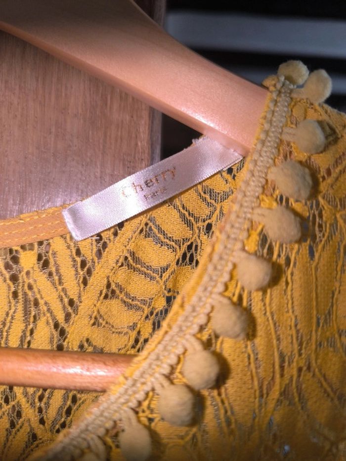Marque Cherry Couleur jaune Taille 3 Petits pompoms tour de cou et début de "manches", plus bas de robe Envoi rapide et soigné