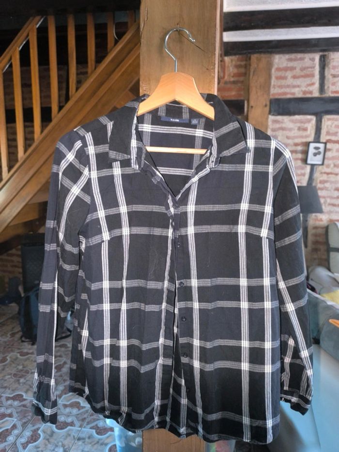 Chemise à carreaux noir et blanc tbe - photo numéro 3