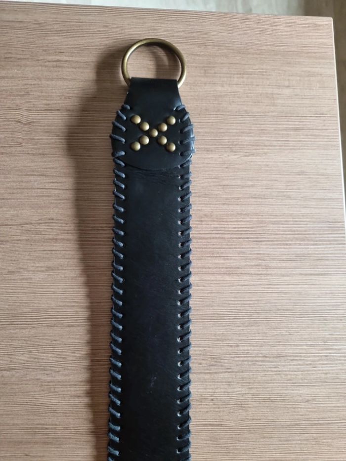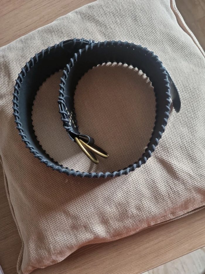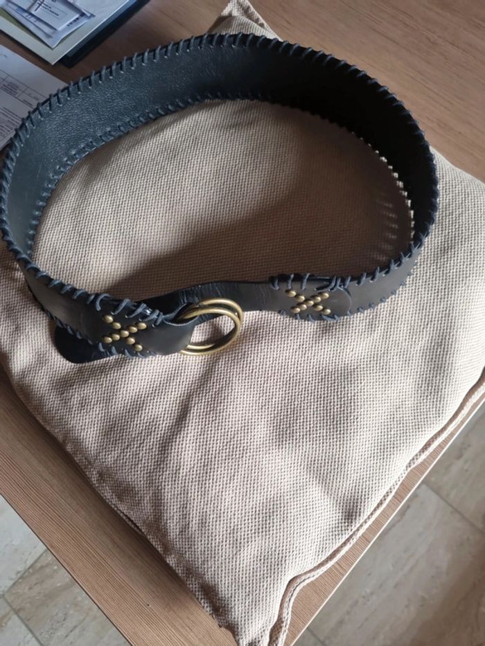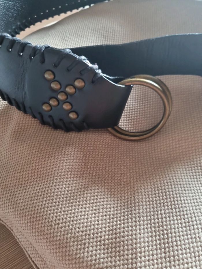 Ceinture noire taille 1 Lacets +clous Aspect cuir Largeur 6,5 cm