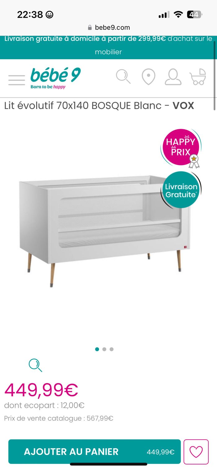 Lit bébé évolutif scandinave quasi neuf ma fille a dormi 4 mois seulement dedans Valeur achat 450 €