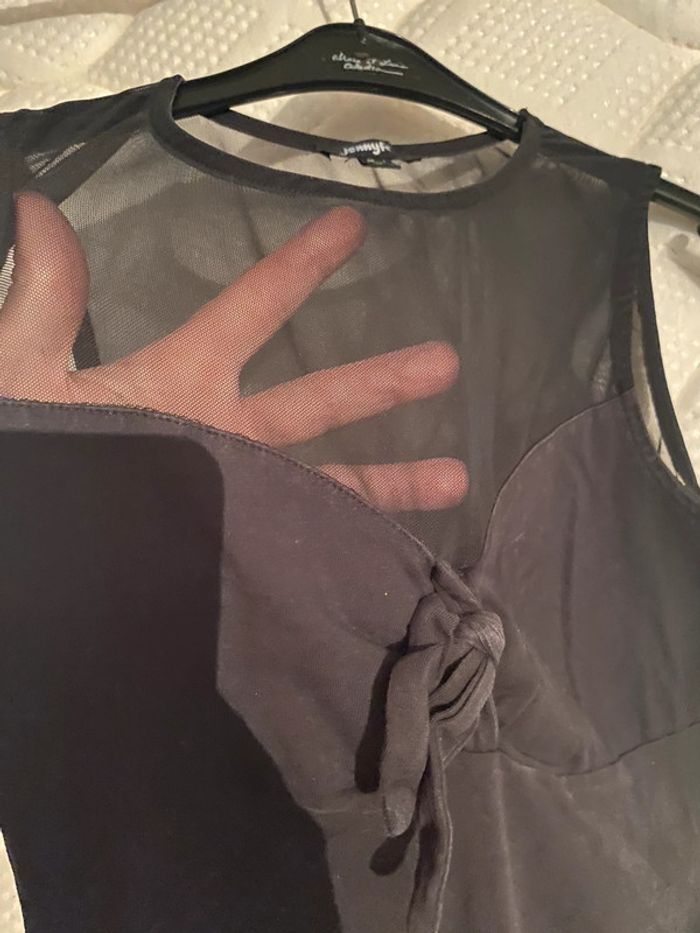 Body noir transparent niveau torse il n’est pas délavé c’est la photo qui fait cela….