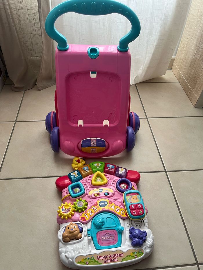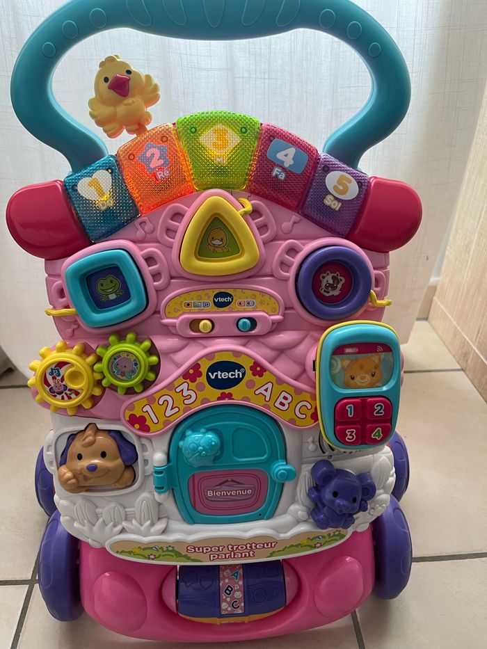 Trotteur rose Vtech quasi neuf, très peu utiliser, en très bon état de fonctionnement, vendu actuellement en moyenne 45€ en magasin Je ne suis pas à l’abri de tâches non vues lors de la prise des photos. Ne pas hésiter à demander plus d’informations ou de photos et à vous abonner.