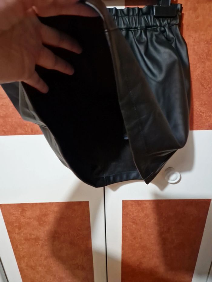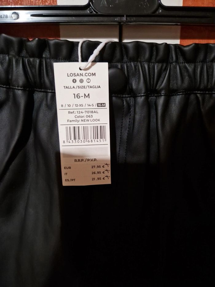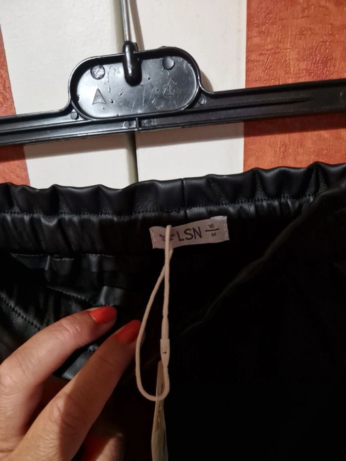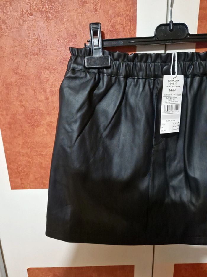 Jupe courte neuve. Effet simili. Taille élastique non ajustable. Poches chaque côté. Taille 16ans mais vaux du 14ans.