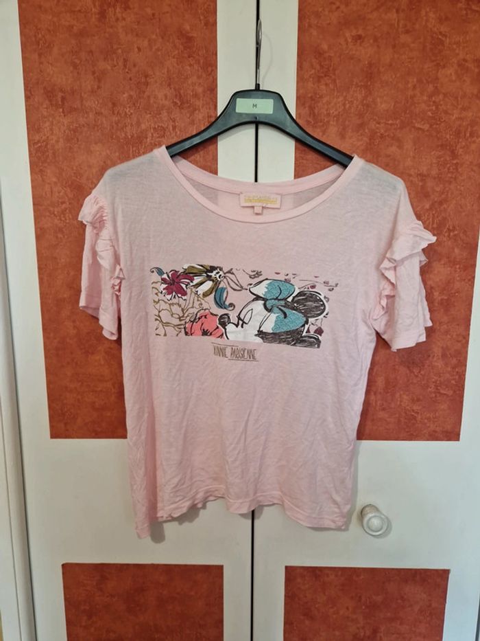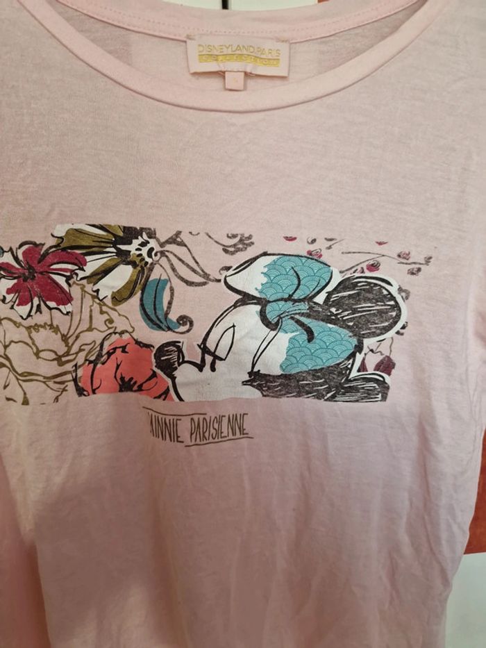 Tee-shirt provient du parc Disneyland Paris. En bon état petite tâche sur le devant plys l'impression légèrement passée. Voir photos. S mais taille petit plus xs ou comme j'ai utilisé taille 14ans.