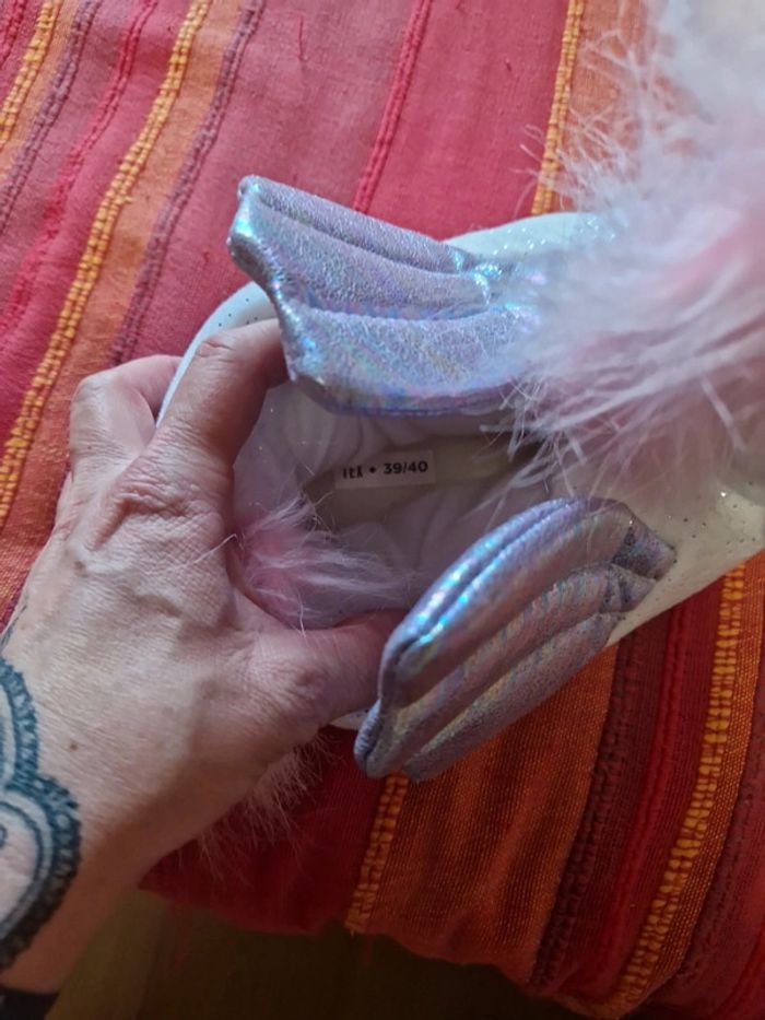 Pantoufle licorne porté 1 seule fois. Il taille petit va plus a un 38.