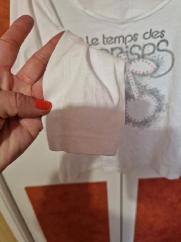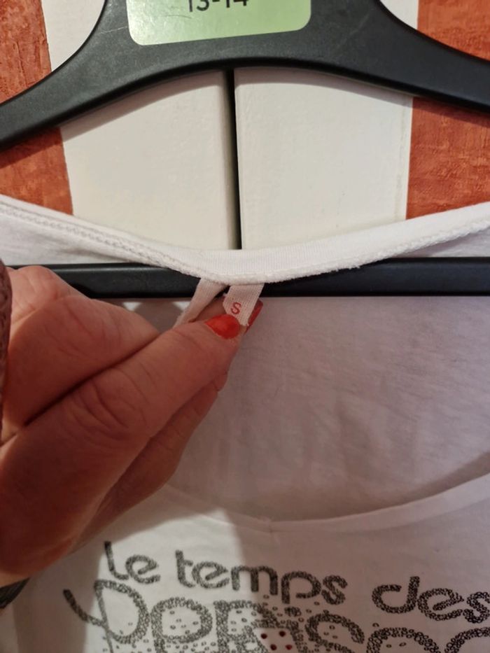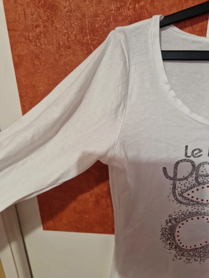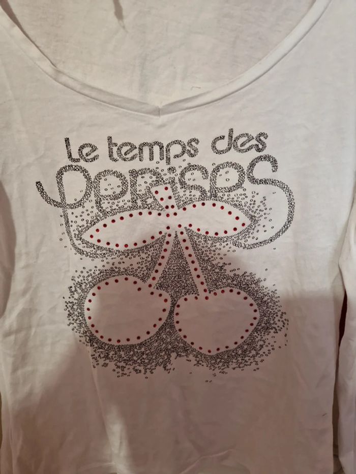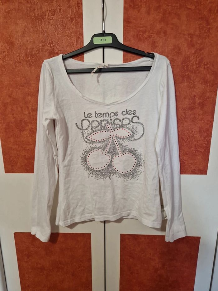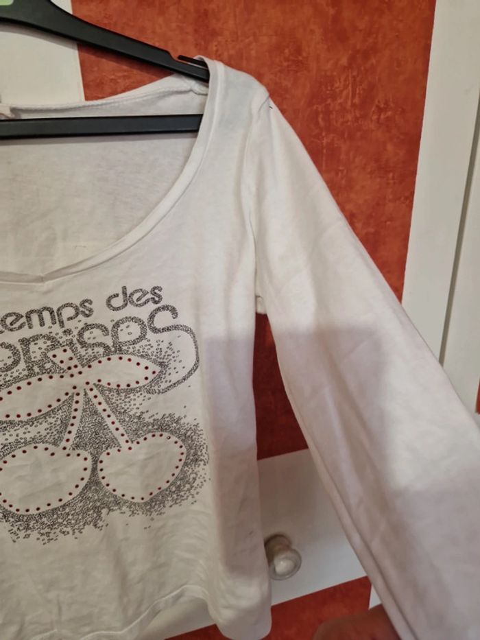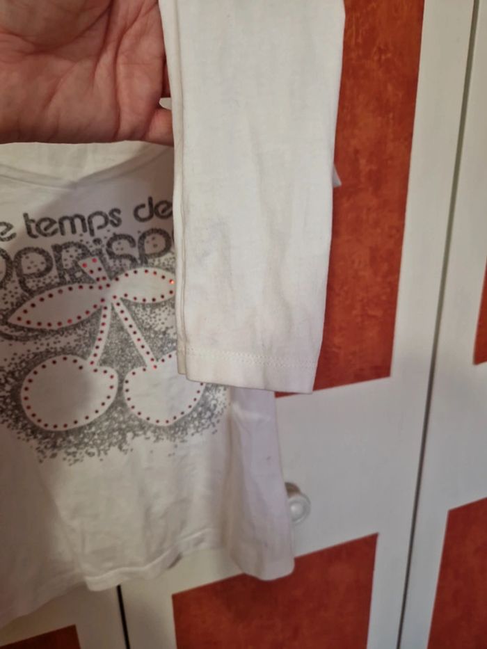 Tee-shirt manches longues. En bon état petit tâche en bas du Tee-shirt voir photo. Écrit S mais correspond à du xs ou 14ans.